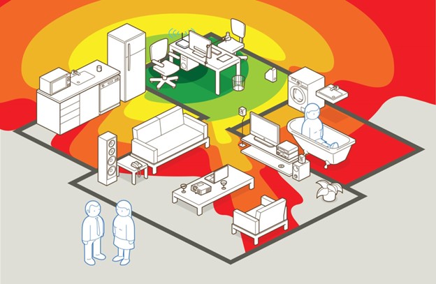 Ubicación ideal: techos centrales, evitando paredes gruesas, lejos de microondas.